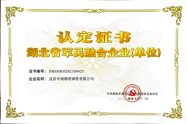 Certification - Hubei Province Military Civilian Integration Enterprise (Unit)